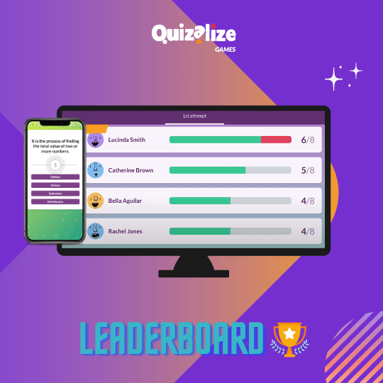 Leaderboard. Another classic Quizalize game. As students answer questions correctly they will climb to the top of the Leaderboard. The brand new team mode elevates the previous version and brings it proudly into the Quizalize Games fresh cohort.
