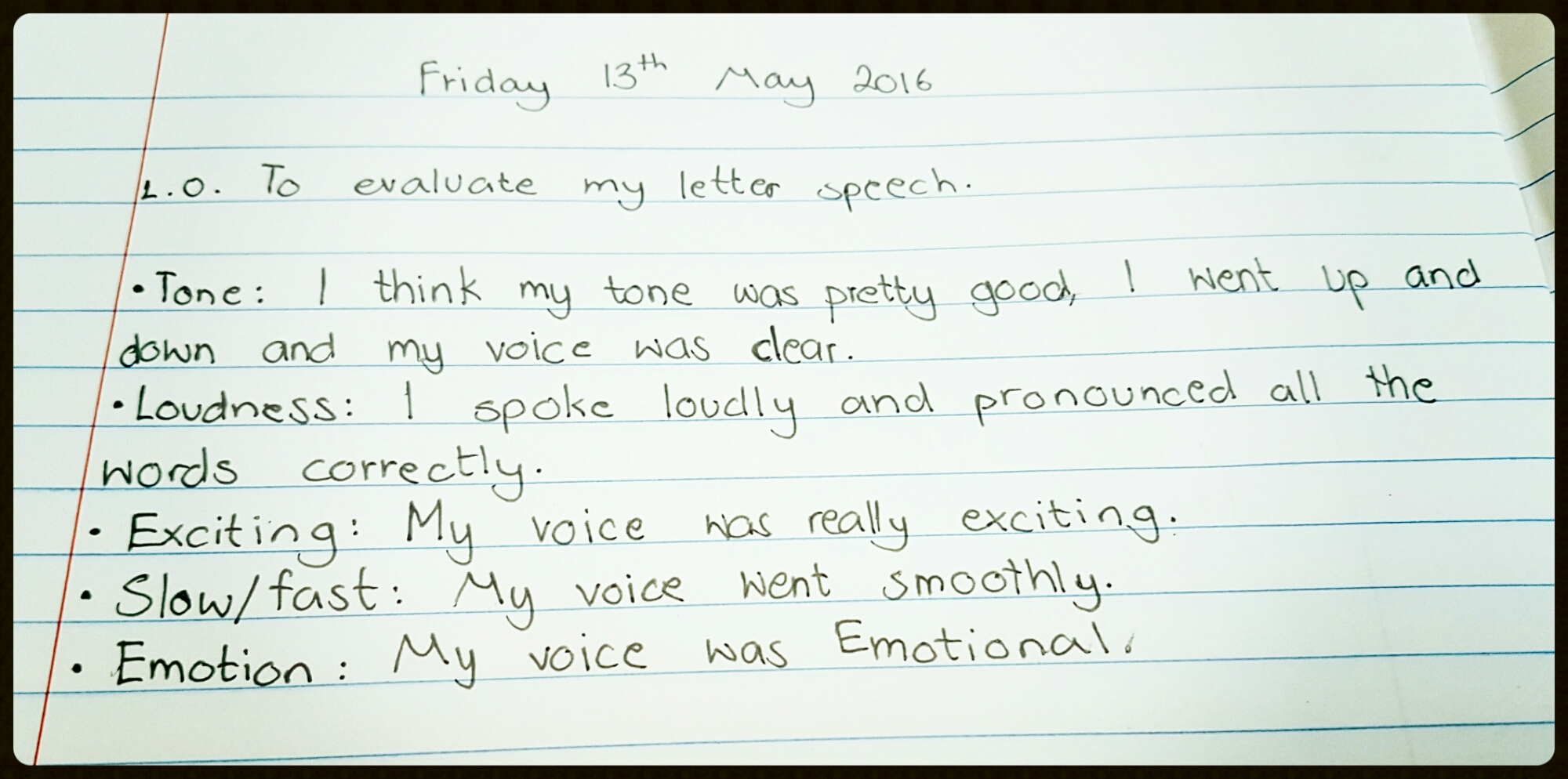 When finished, you can view both videos and discuss similarities and differences in both – writing down ways to improve. Here is one of my student’s evaluations: