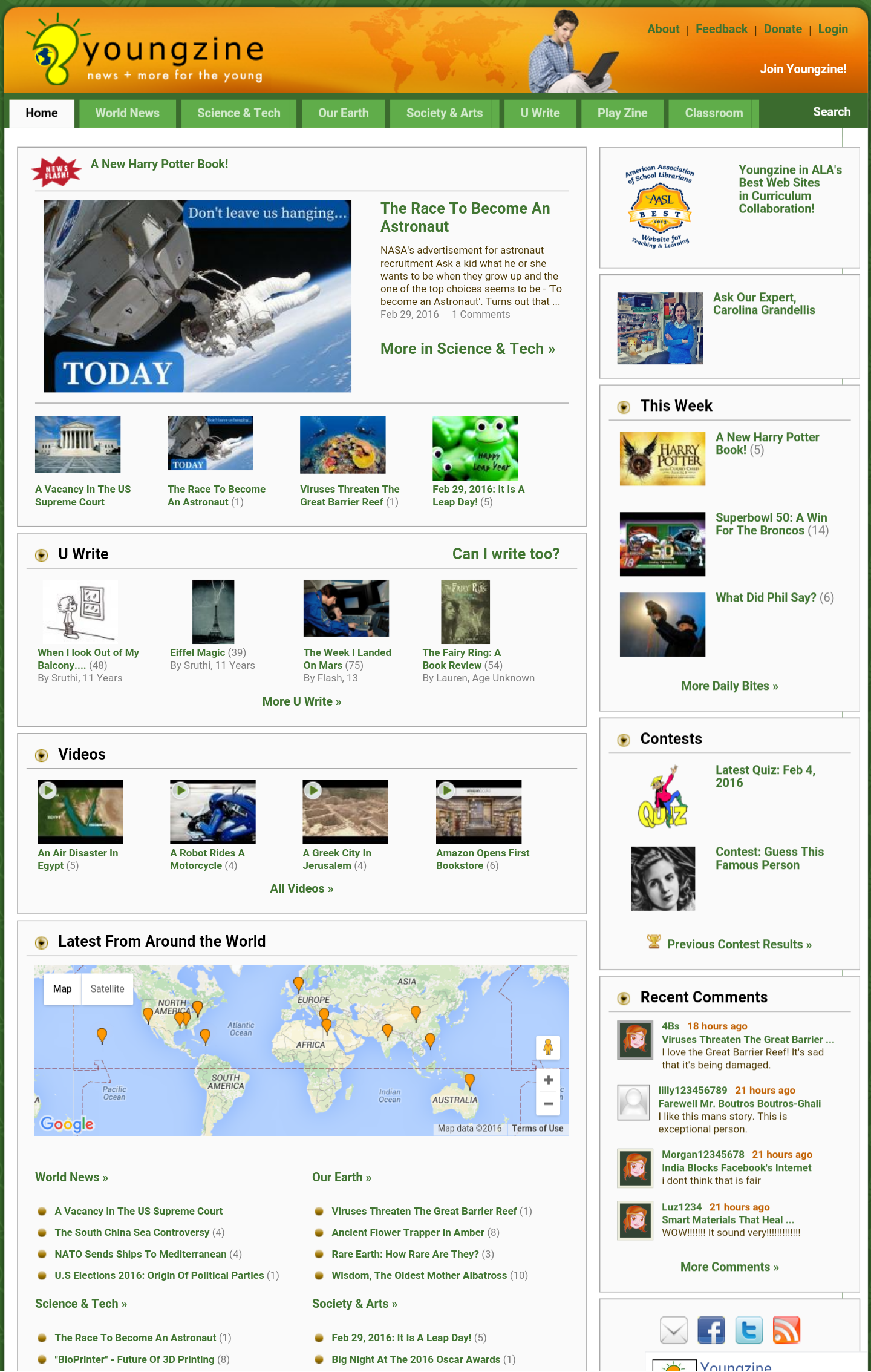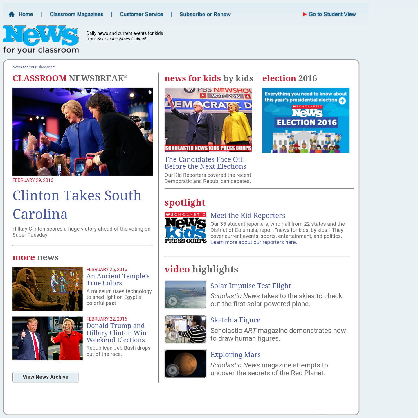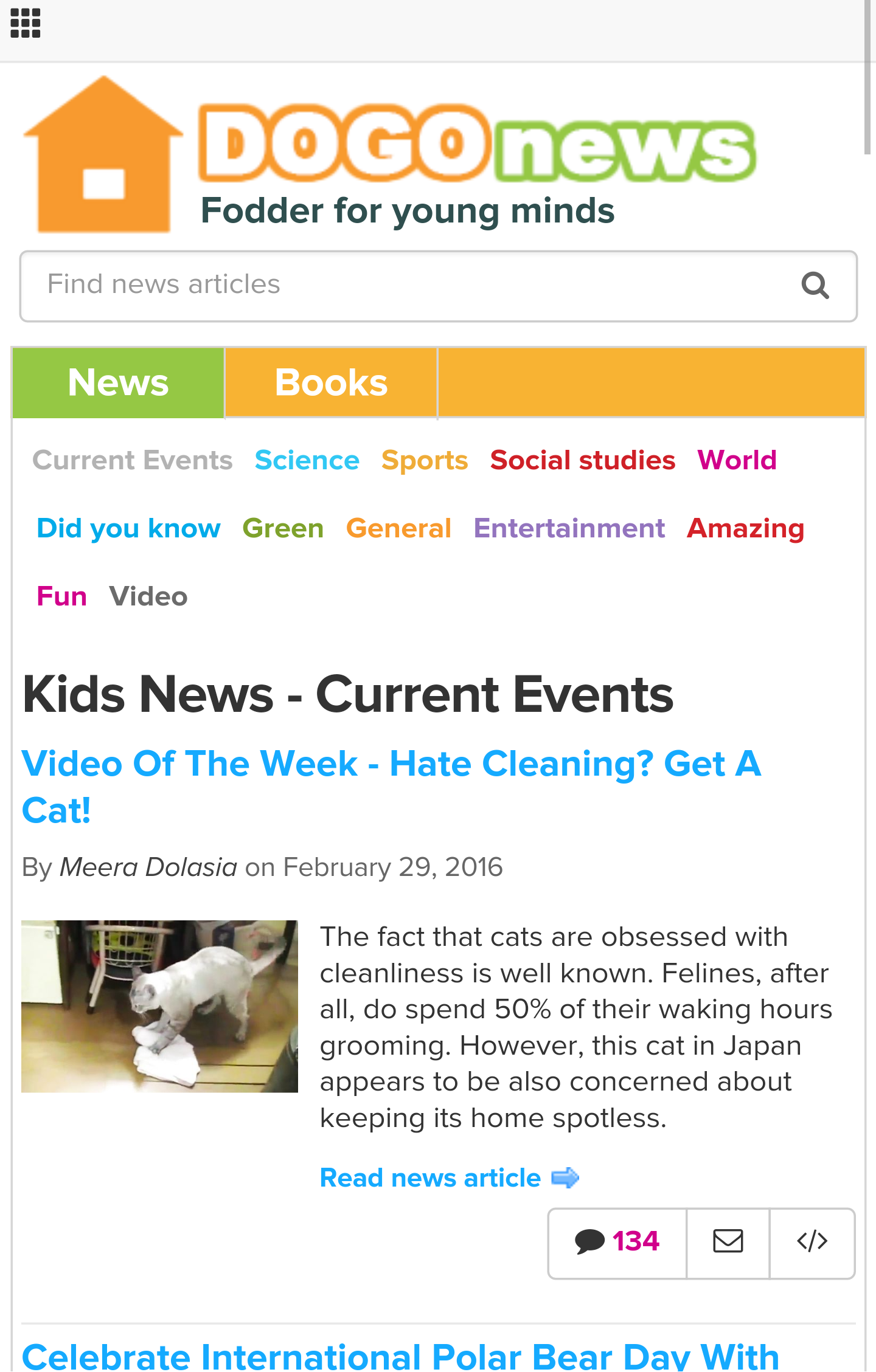 Below are 10 excellent news websites. They are designed and written FOR children. I’m always impressed when the websites have a quiz or activity at the end of the article. In addition, some of the sites let you reduce or increase the complexity of the article; great if you have a wide range of readers in your class.